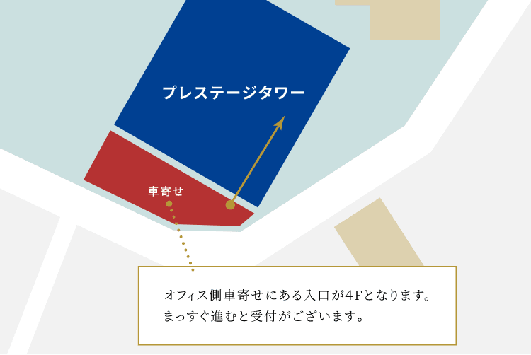 ※ タクシーでお越しの際は、「オフィス側の車寄せ」 へお越しください。