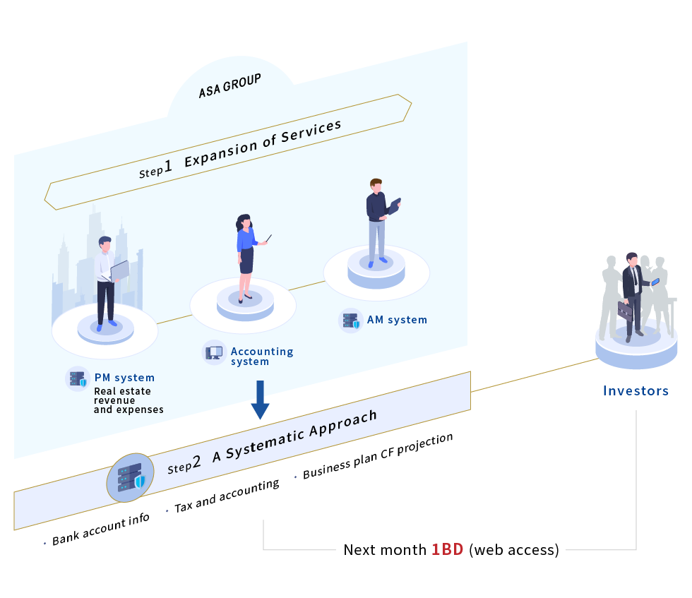 By maintaining confidentiality and building a database of market, investment property, and structure information, we will serve various roles including marketing, advisory, and thinktank for our clients and investors. ASA Group will go beyond the confines of an accounting firm to become an information-based provider.
